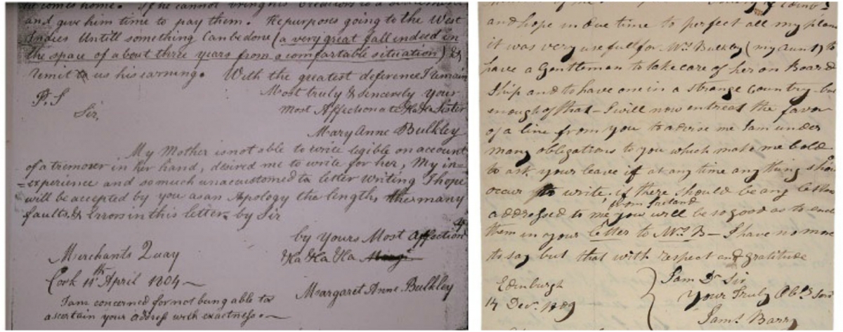 [ पहिलं पत्र मार्गारेट या नावानं १८०४साली लिहिलं गेलं आहे, तर दुसरं पत्र आहे १४ डिसेंबर १८०९ रोजी आलेलं, तेच ते निर्णायक पत्र.. स्त्रोत]