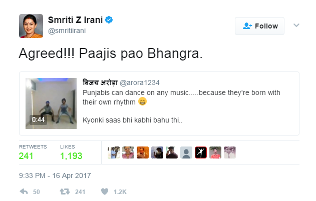हा डान्स बघून स्मृती इराणींना सुद्धा ट्विट केल्यावाचून राहावलं नाही.