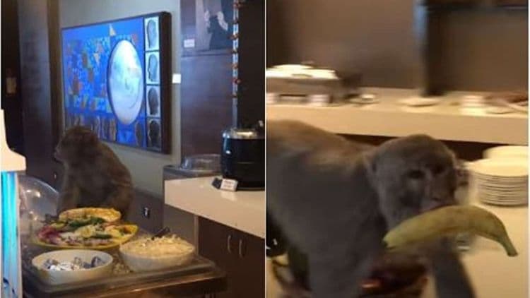 दिल्ली येथील इंदिरा गांधी आंतरराष्ट्रीय विमानतळावर व्हीआयपी लाऊंजमध्ये एक माकड आलं होतं. हे माकड इथवर हा कसं पोहोचलं हे तर कोडंच आहे. पण त्या माकडने तिथे आणखी काय उपद्व्याप केले हे आणखी मजेशीर आहे. हे माकड तिथे येऊन नुसतं बसलं किंव उड्या मारत नव्हतं, तर त्याने आरामात ज्यूस प्यायला. वरून बार काउंटरवर मस्तपैकी जेवण ही केले. साहजिक या माकडाचा हा व्हिडीओ शूट करण्याची संधी लोकांनी सोडली नाही.