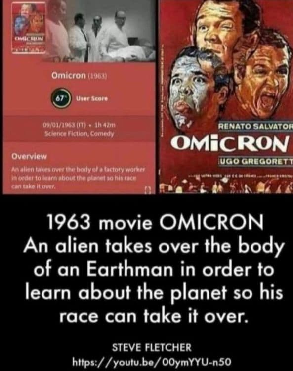 तर सांगायची गोष्ट अशी की ओमीक्रोन नावाचे दोन सिनेमे येऊन गेले आहेत.या सिनेमांची आता चांगलीच चर्चा रंगत आहे.महिंद्रा कंपनीचे आनंद महिंद्रा आणि रामगोपाल वर्मा यांसारख्या मोठ्या लोकांनी या सिनेमाबद्दल ट्विट केले आहे. त्यात काही महाभागांनी ओमीक्रोन सिनेमाचे पोस्टर फोटोशॉप करून ओमीक्रोन व्हेरियन्ट करून टाकले. रामगोपाल वर्मा याच भूलथापाला बळी पडून ट्विट करून गेला. १९६३ साली म्हणजेच तब्बल ६० वर्षांपूर्वीच हा 'ओमीक्रोन' नावाचा सिनेमा येऊन गेला आहे.