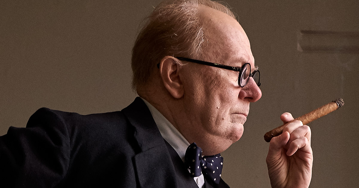 गॅरी ओल्डमन 'विन्स्टन चर्चिल यांच्या भूमिकेत (स्रोत)