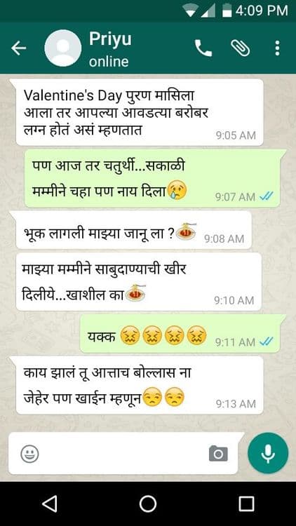 या व्हॅलेंटाइन्स डे च्या दिवशी आम्ही तुमच्यासाठी घेऊन आलो आहोत व्हॉट्सअप चॅटवरचा एक प्रेमळ संवाद. आज तुमच्या व्हॅलेंटाइनसोबत अशी तर चॅट झाली नाही ना ?