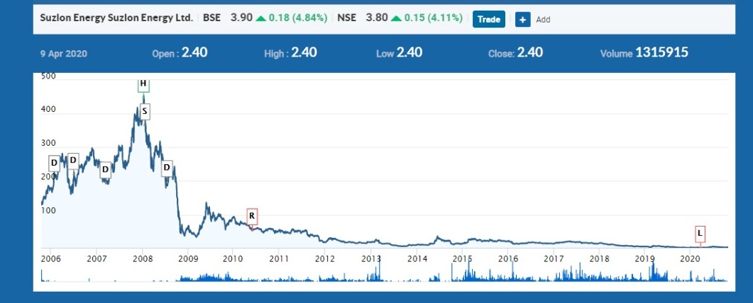 याचे नेमके उदाहरण म्हणजे सुझलॉनमध्ये गुंतवणूक करणार्याच्या हातात काय शिल्लक आहे ते बघा. २००८ साली रु. ४५९ आणि २०२० मध्ये रु.३.६५. आजही पवन उर्जेची गरज तीच आहे, पण एकेकाळी चांदी असलेला शेअर आज कथिलाच्या भावाचा पण नाही.