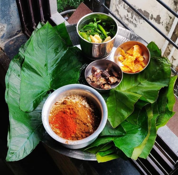 १. अळूची आठ-दहा पाने: पाने आधी पाण्यात अगदी व्यवस्थित धुवा, शिरा काढा आणि मग स्वच्छ कापडावर पाणी निथळून जाण्यासाठी ठेवून द्या. किंवा कोरड्या कापडाने पुसा.