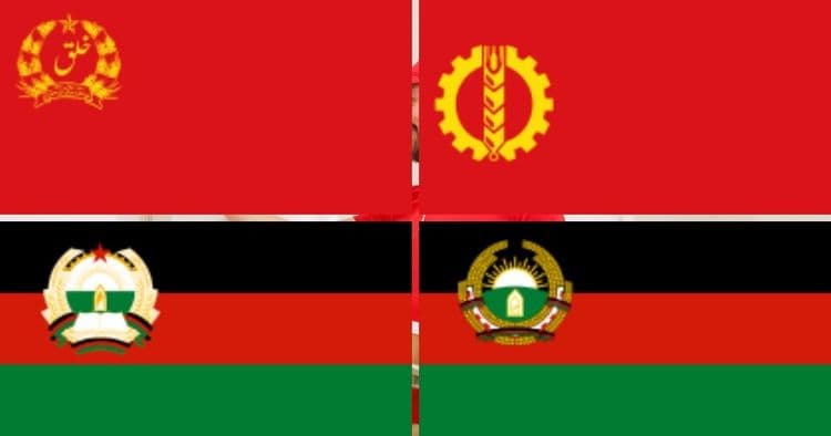 १९७८ मध्ये पुन्हा अफगाणिस्तानचा संपूर्ण ध्वज लाल झाला. गव्हाच्या ढिगाऱ्याने वेढलेल्या डिझाईनमध्ये एक शब्द लिहिला होता, 'खल्क' . याचा अर्थ लोक. १९८०-१९९२ मध्ये काळा,लाल, हिरव्या आडव्या रेषांचा ध्वज पुन्हा आला. पण त्यातले चिन्ह दोनदा बदलण्यात आले.