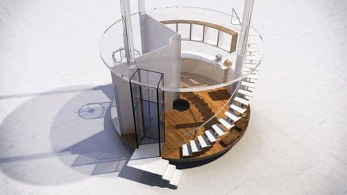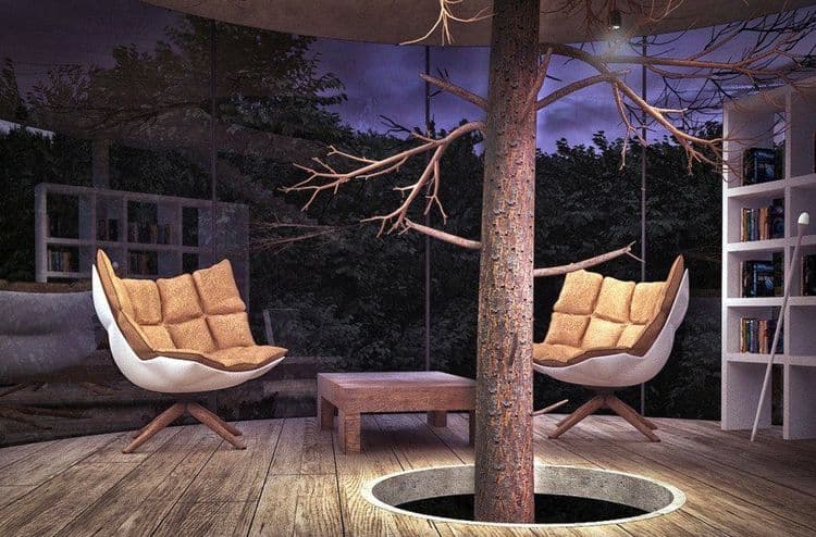 दोन माणसांसाठी बांधलेल्या ह्या घरात चार मजले आहेत. खालून वरपर्यंत काचेच्याच भिंती आहेत. एका मजल्यावरून दुसऱ्या मजल्यावर जाण्यासाठी पांढरा गोलाकार जिना आहे. ह्या घराच्या बांधकामात मेटल कॉमस, प्लास्टरबोर्ड पॅनेल्स, काँक्रीट ह्यांचाही वापर केलेला आहे. घराच्या जमिनी ह्या लाकडी आहेत. सर्वात महत्त्वाचे म्हणजे घराच्या बरोबर मध्ये एक जीवंत झाड आहे. आणि म्हणूनच ह्या घराला "ट्री हाऊस" असं म्हटलं गेलंय.