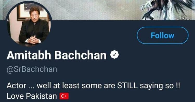 हॅकर्सनी अमिताभचा ट्विटरचा बायो पण बदलला राव!! वरून त्यांची प्रोफाइल फोटो पण बदलून तिथे अमिताभ ऐवजी पाकिस्तानचे पंतप्रधान इम्रान खान यांचा फोटो ठेवला. एवढ्यावर ते थांबले नाहीत मंडळी, त्यांनी बायो बदलून लिहिले, "Love Pakistan"..