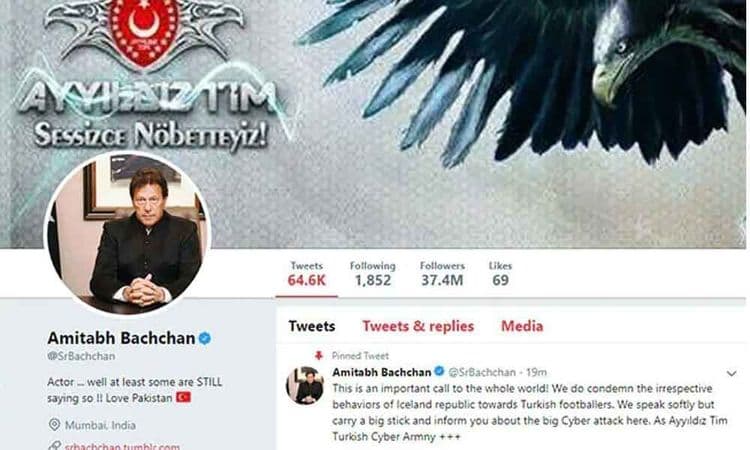 सध्या हा हॅकिंगचा ताजा बळी ठरलेले आहेत बॉलिवूडचे महानायक अमिताभ बच्चन!! सोमवारी रात्री अमिताभ बच्चन यांचे अकाऊंट अचानक हॅक झाले. सुरवातीला यामागे कुणाचा हात आहे याचा पत्ता लागत नव्हता. पणन नंतर पाकिस्तान समर्थीत तुर्कीच्या टर्किश सायबर आर्मी ' अईलदीज टीमने' या सायबर हल्ल्याची जबाबदारी घेतली. मंडळी या हॅकर्सनी अमिताभ बच्चन यांचे ट्विटर अकाऊंट हॅक करून त्यावरून पाकिस्तान आणि तुर्कीच्या समर्थनार्थ मॅसेज पोस्ट केले होते.