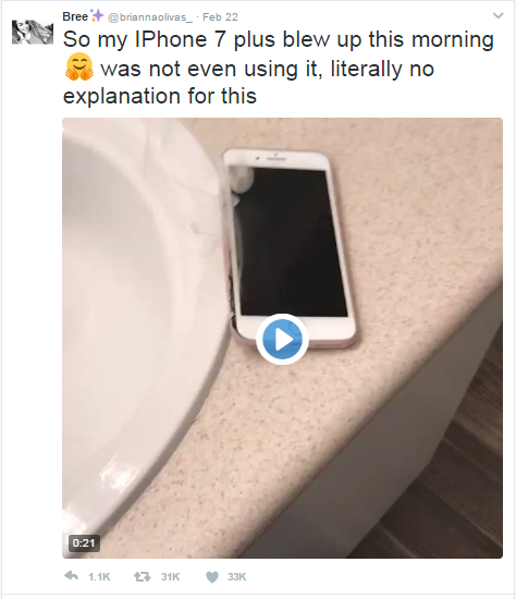 ‘ब्रायाना ऑल्वस’ या अॅपलच्या युझरनं काही दिवसांपूर्वी एक विडीओ ट्विटरवर शेअर केला होता. या विडीओमध्ये ‘Apple iPhone 7’नं पेट घेऊन फोनच्या मागचे कवर उष्णतेमुळे विरघळताना दिसत आहे. लाखोंनी हा विडीओ पहिला आणि ही बातमी अॅपल कंपनीपर्यंत जाऊन पोहोचली. अॅपलनं मग या फोनला ताब्यात घेऊन आग लागण्यामागची कारणं शोधायला सुरुवात केली आहे.