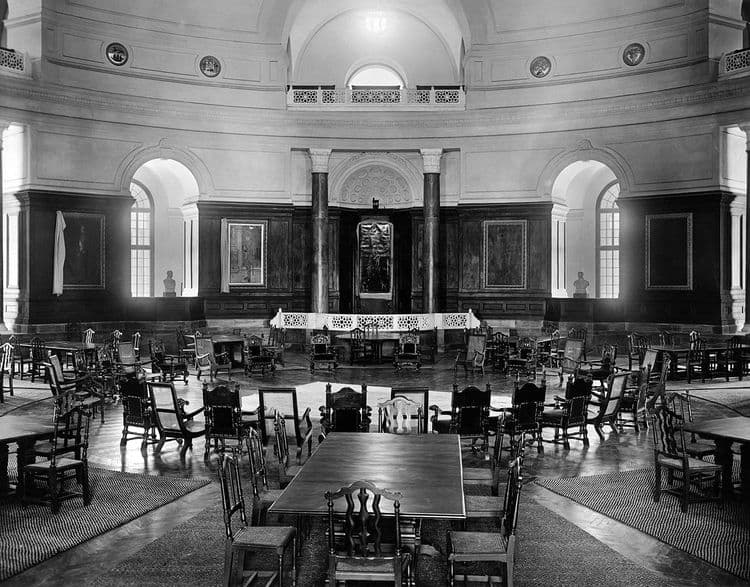 हा आहे संसद भवनातला सेन्ट्रल हॉल. त्यावेळी या हॉलचा वापर लायब्ररी म्हणून केला जायचा. सध्या तो महत्वाच्या सामाराभांसाठी वापरला जातो.