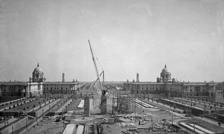 हा पॅनॉरमा फोटो आहे. नॉर्थ ब्लॉक आणि साउथ ब्लॉक सहित उजवीकडच्या कोपऱ्यात संसद भवन तुम्ही बघू शकता. हा परिसर आज एवढा मोकळा राहिलेला नाही.