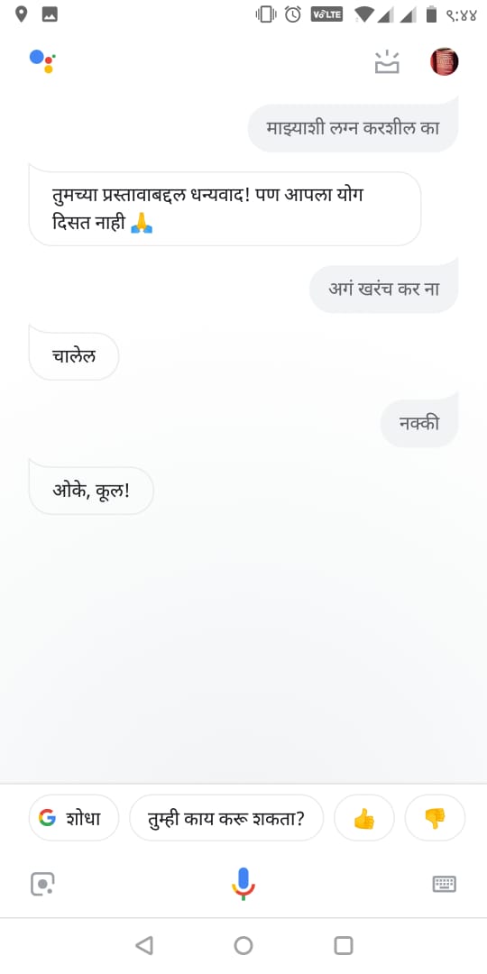 आता ते सगळं बंद करुन बाहेर म्हणजे होमस्क्रीनला या. आपल्या मोबाईलचं मधलं बटन दाबून धरा. हे केलं, की आपल्यासमोर गुगल असिस्टंट ओपन होईल. आता या गुगल असिस्टंटशी मराठीत गप्पा मारा आणि ती काय उत्तरं देते पाहा.