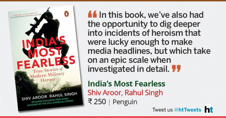 इंडियाज मोस्ट फिअरलेस: ट्रू स्टोरीज ऑफ मॉडर्न मिलिटरी हिरोज. या पुस्तकात अशा १४ कथा आहेत. शिव अरूर आणि राहुल सिंग हे लेखक आहेत .