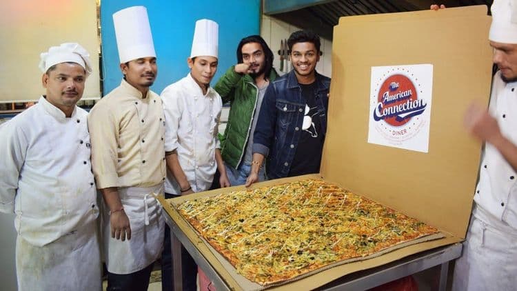दिल्लीतील हा सर्वात मोठा पिझ्झा असल्याचे सांगण्यात येत आहे. हा पिझ्झा वेगवेगळ्या ऑप्शन्समध्ये तुम्ही खाऊ शकता. फोर चीज, सुप्रीम व्हेज, चीज अल्फ्रेडो, आणि स्पेशल अमेरिकन कनेक्शन असलेले बेकन, सॉसेजेस, पेप्परोनी हे सगळेही ऑप्शन आहेत राव!! यासोबतच तुम्हांला हवा तो, हवा तसा कस्टमाईझ्ड् पिझ्झाही तयार करून द्यायला ते तयार आहेत, फक्त एका तासात तुम्ही तो संपवायला पाहिजे ही अट मात्र आहे.