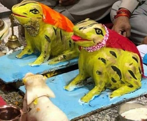 ही आयडीया लोकांना चांगलीच आवडली आणि सगळे कामाला लागले. आता ज्यांचे लग्न लावले ती बेडके सापडणे शक्य नव्हते राव!! मग काय मातीच्या दोन प्रतिकृती बनविण्यात आल्या आणि त्यांचा रीतसर घटस्फोट करण्यात आला.