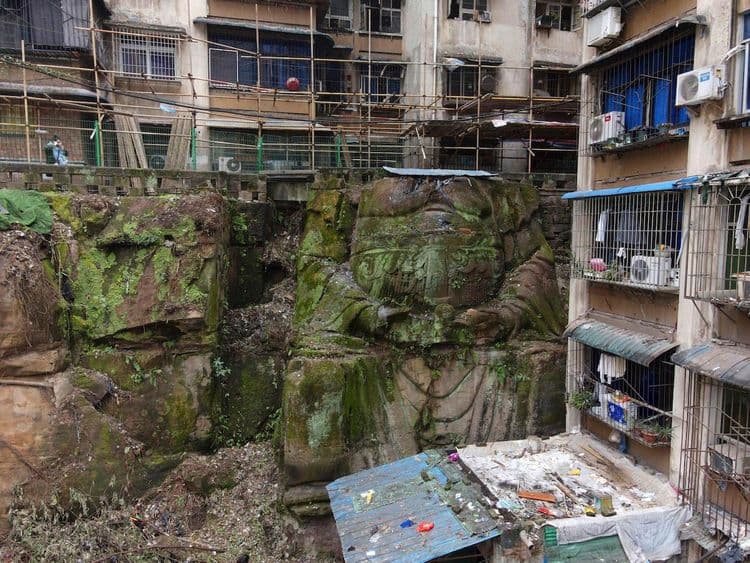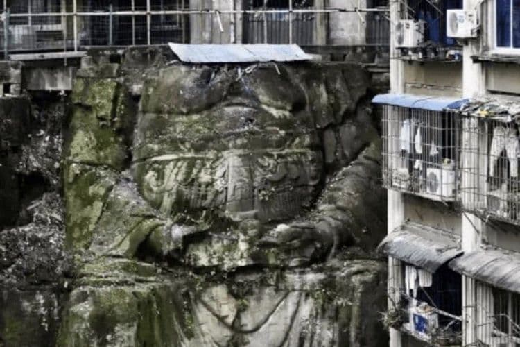 आपल्या शेजारील चीनला बराच मोठा सांस्कृतिक वारसा आहे. बौद्ध परंपरेचा प्रभाव चीनवरही आढळतो. जगातील सर्वात मोठी बुद्ध मूर्तीही चीनमध्येच आहे. अलीकडेच अगदी चार-आठ दिवसांपूर्वी चीनच्या शॉंग्किंग मध्ये एक जुनी बुद्धमूर्ती आढळून आली आहे. यात नवल तसं काही नाही, कारण अशा जुन्यापुराण्या मुर्त्या अधूनमधून सापडतच असतात. या मूर्तीचं कौतुक यासाठी की शॉंग्किंग मधील एका उंच ठिकाणी बांधलेल्या दोन अपार्टमेंट्सच्या पायाशी ही बुद्धमूर्ती आढळून आलेली आहे. परंतु ३० फुट उंचीच्या या बुद्धमूर्तीला शीरच नाही. या बुद्ध मूर्तीचा फक्त खांद्यापर्यंतचा भाग दिसतो. त्याच्या खांद्याच्या वरच्या बाजूलाच या दोन्ही अपार्टमेंटचे बांधकाम केलेले दिसेल.