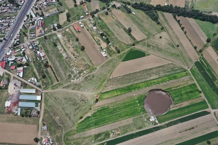 मेक्सिकोतील प्याब्ला राज्यातील एका शेतात असेच एक ३०० फुट रुंदीचे भगदाड तयार झाले आहे. शनिवारी या शेतात फक्त १५ फुटाचा एक खड्डा पडला होता. शेतातील माती मऊ झाल्याने असा खड्डा तयार होणे सहाजिक आहे. म्हणून याकडे फारसे कुणी लक्ष दिले नाही, पण हळूहळू हा खड्डा मोठा होत गेला आणि त्यात भूगर्भातील पाणी साठत गेले आणि या भल्या मोठ्या भगदाडाला एका तळ्याचे रूप आले.