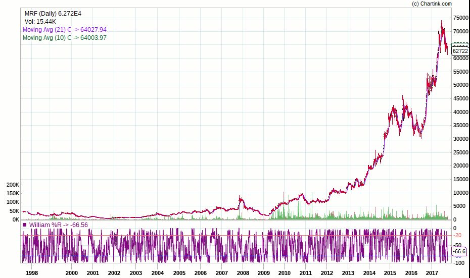 इतक्या वर्षांत एम. आर. एफच्या शेअर्सच्या किमती अशा वाढल्या आहेत..