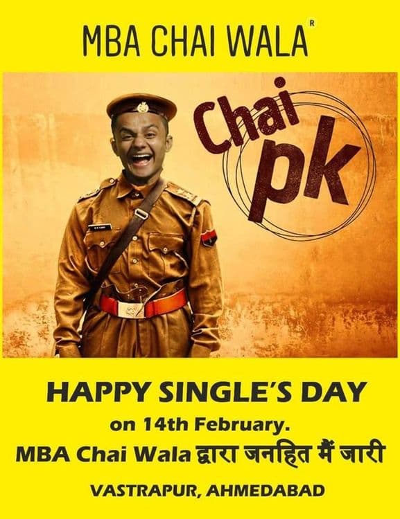 व्हॅलेंटाइन जवळ येतोय पण तुमचं सिंगलत्व (सिंगल असण्याची अवस्था) अजून संपत नाहीये का ? पण यांची काळजी कोणाला आहे भाऊ ? १४ तारखेला सगळं लक्ष कपल्सवर असणार. सिंगल लोकांना विचारतोय कोण ? पण असं नाहीय हा. गुजरातचा एक चहावाला आहे ज्याला सिंगल लोकांची खूप काळजी आहे. हा चहावाला १४ तारखेला केवळ सिंगल लोकांना मोफत चहा वाटप करणार आहे.