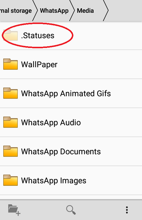 आपल्या मोबाईल मध्ये अनेक छुपे फोल्डर्स (hidden folders) असतात. यातलाच एक फोल्डर म्हणजे ‘स्टेटस फोल्डर’. आपल्या मोबाईल मध्ये व्हॉटसअँपची मेसेज फाईल, फोटो, व्हिडीओ, जीआयएफ, डोक्यूमेंट्स इत्यादी जतन करण्यासाठी एक स्वतंत्र फोल्डर असतो. या फोल्डर मध्ये स्टेटस नावाचा आणखी फोल्डर सुद्धा असतो पण हा फोल्डर छुपा असल्याने तो आपल्याला दिसत नाही. या फोल्डर मध्ये आपण पाहिलेले फोटो किंवा व्हिडीओज अपोआप सेव्ह केले जातात.