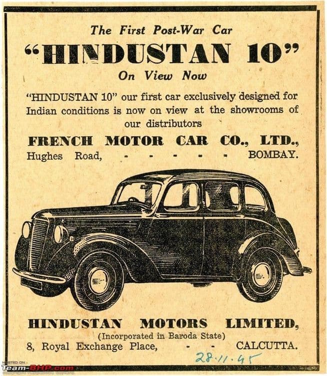अनेकांना लँडमास्टर ही भारतातील पहिली कार वाटते, तर काहींना प्रीमियर पद्मिनी. पण यांपैकी कुठलीच कार ही भारतातील पहिली कार नव्हती. तर ती होती हिंदुस्थान १०!! ब्रिटनच्या मॉरिस-१० सिरीजला रिबॅज करून हिंदुस्थान मोटर्सने ही कार तयार केली होती. गुजरातमधल्या ओखा बेटावर १९४९ साली कारचे काम करण्यात आले होते.