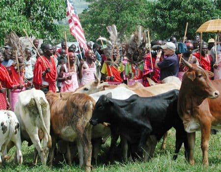 हे सगळं ऐकल्यानंतर त्या साध्याभोळ्या लोकांना दुःख तर झालंच, पण नायोमा सहीसलामत सुटला याबद्दल हायसंही वाटलं. मग त्यांनी मानवतेच्या दृष्टिकोनातून त्यांना अत्यंत पवित्र असलेल्या गायी अमेरिकेला मदत म्हणून पाठवण्याचं ठरवलं. त्यासाठी त्यांनी ०१ जून २००२ रोजी आपल्या गावात एक खास कार्यक्रम आयोजित केला. त्यावेळी जमातीच्या मुखियाने अमेरिकेचे केनियातील राजदूत विल्यम ब्रेनसिक यांच्याकडे १४ गायी १४ गायी सुपूर्द केल्या.