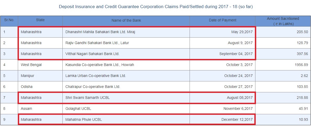 सर्वसामान्य ठेवीदारांच्या एक लाखापर्यंतच्या ठेवी deposit insurance and credit guarantee corporation (DICGC) यांच्या मार्फत सुरक्षित असतात. लाखाच्या वरील सर्व रकमा असुरक्षित असतात. बुडलेल्या बँकेची विल्हेवाट लावल्यानंतर असुरक्षित रकमेच्या १० ते १५ टक्के रक्कम मिळते असा आतापर्यंतचा अनुभव आहे.