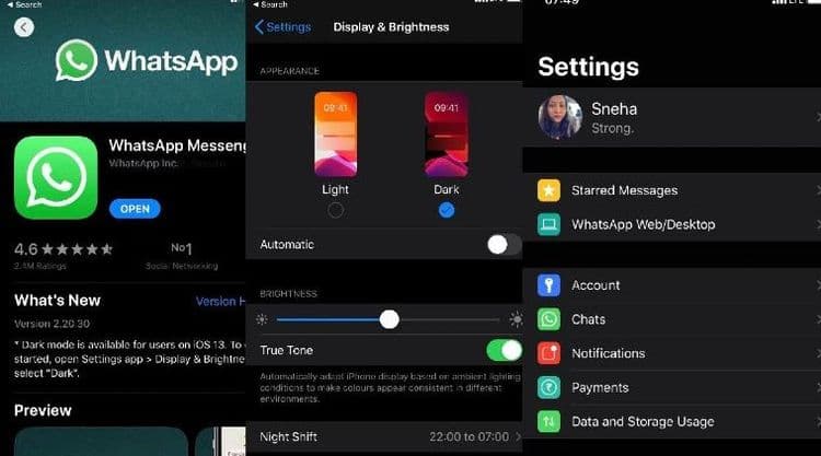 अॅपल फोन्सवर डार्क मोड मिळवण्यासाठी अॅप स्टोरवर जाऊन व्हॉट्सअॅप अपडेट करा आणि अँड्रॉइड १० च्याच स्टेप्स फॉलो करा.