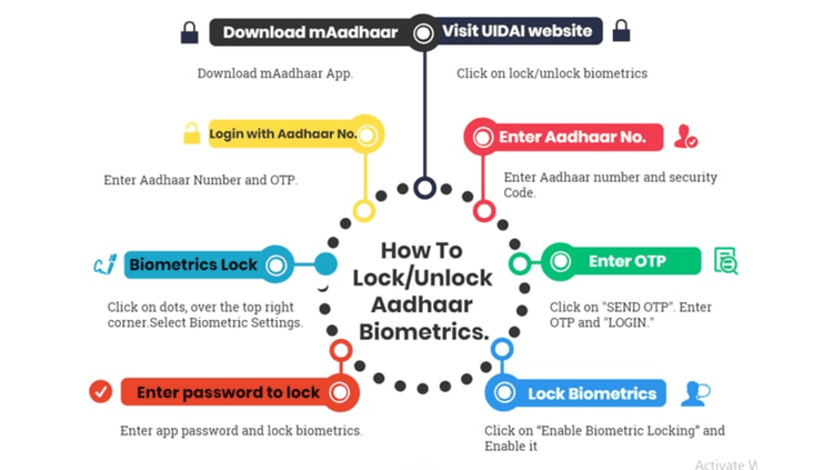 अशाच प्रकारे भारतीय रहिवासी त्यांचे आधार आणि त्यांचे बायोमेट्रिक्स देखील लॉक करू शकतात. सरकारने आधार माहितीचे संरक्षण करण्याचे मार्ग देखील आणले आहेत. आपण आपला १२ अंकी आधार नंबर लॉक करून त्याऐवजी १६ अंकी व्हर्च्युअल आयडीचा (व्हीआयडी) वापर करू शकतो. पोर्टलचा वापर करणारी व्यक्ति त्याचे बायोमेट्रिक्स लॉक करून त्याचे संरक्षण करू शकते. ते आपण कधीही अनलॉकही करू शकतो.