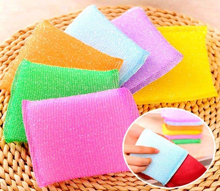 ७. कोणती भांडी घासण्यासाठी काय वापरायचं याचंपण एक गणित आहे. यासाठी घरात तीन प्रकारच्या घासण्या असाव्यात. नायलॉनची मऊ घासणी, स्कॉच ब्राईटची बेताची खरखरीत घासणी, आणि खरखरीत मेटल स्क्रबर्स. काचेची भांडी, इनॅमल वेअर, सिरॅमिक, काचेची भांडी, नॉनस्टिक भांडी यांच्यासाठी नायलॉनची मऊ घासणी आणि डायल्यूट लिक्विड सोप हे कॉम्बिनेशन सगळ्यात उत्तम. रोजच्या वापरातली स्टीलची ताटं, वाट्या, पातेली चमचे यासाठी स्कॉच ब्राईट आणि लोखंडी तवे व कढया यांच्यासाठी मेटल स्क्रबर्स वापरावेत.