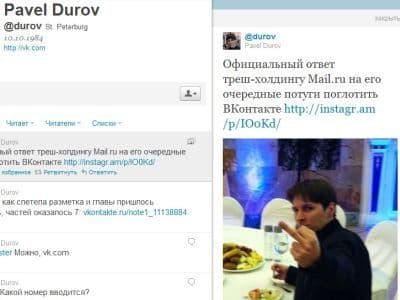 ३. २०११मध्ये या मागणीला उत्तर म्हणून त्यांनी VKontakteवर जिभल्या दाखवणार्या कुत्र्याचा फोटो टाकला. नंतरच्या काळात तर सरकारची टर ऊडवणारा ज्याला आपण मराठीत 'तुमच्या नानाची टांग' असे म्हणू अशा प्रकारच मधले बोट वापरून दर्शवणारे फोटो VKontakte वर टाकले. अर्थातच आता हा फोटो डिलीट करण्यात आला आहे. परिणामी VKontakte वरचा ताबा मिळवण्यासाठी सरकारने Mail.ru या इन्व्हेस्टर कंपनीचा वापर केला आणि दुरॉवच्या हातातून कंपनीचा ताबा निसटला.