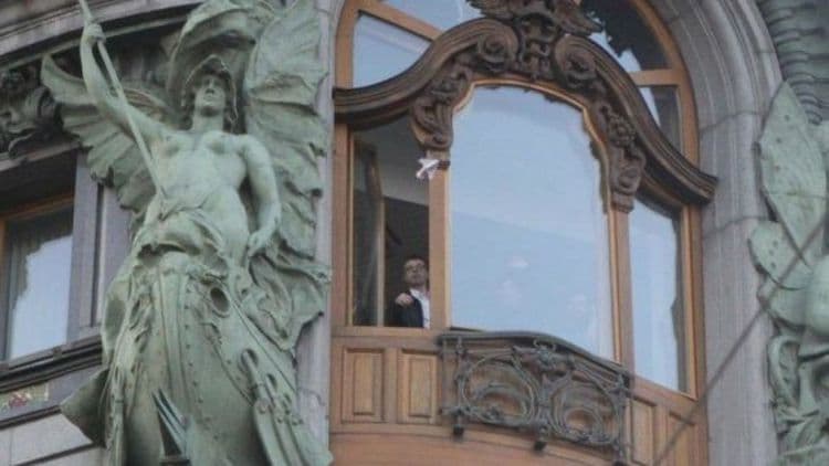 (दुरॉव कागदी नोटांची विमानं उडवताना)