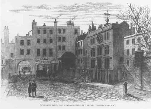 (ब्रॉडवे येथील मेट्रोपोलिटन पोलीस मुख्यालय ज्याला न्यू स्कॉटलंड यार्ड नाव देण्यात आलं होतं.)
