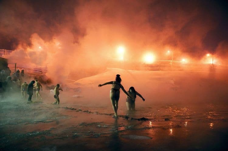 कुणी या नोरील्स्कला स्वर्ग म्हणतं, तर कुणी इथे जन्मलेला प्रत्येक माणूस हिरो आहे असं म्हणतं. इथे स्थायिक नसलेला माणूस इथे येतो तेव्हा त्याचं रक्त गोठल्याशिवाय राहणार नाही. या सगळ्यांतही अलेना इथे आली ते इथे माणसं राहतात कशी हे पाहण्यासाठीच. जवळ जवळ ९ महिन्यांच्या तिच्या नोरील्स्क वास्तव्यात ती हे सगळं आपल्या डोळ्यांनी, कॅमेऱ्याने टिपत होती. त्यांच्या जगण्याचा फंडा समजून घेत होती. त्यातलाच एक फंडा अलेनाने तिच्या एका फोटोत टिपलाय. कडाक्याच्या थंडीत टिकून रहायचं तर घराच्या बाहेर पडा आणि थंड पाण्यात पोहायला लागा.