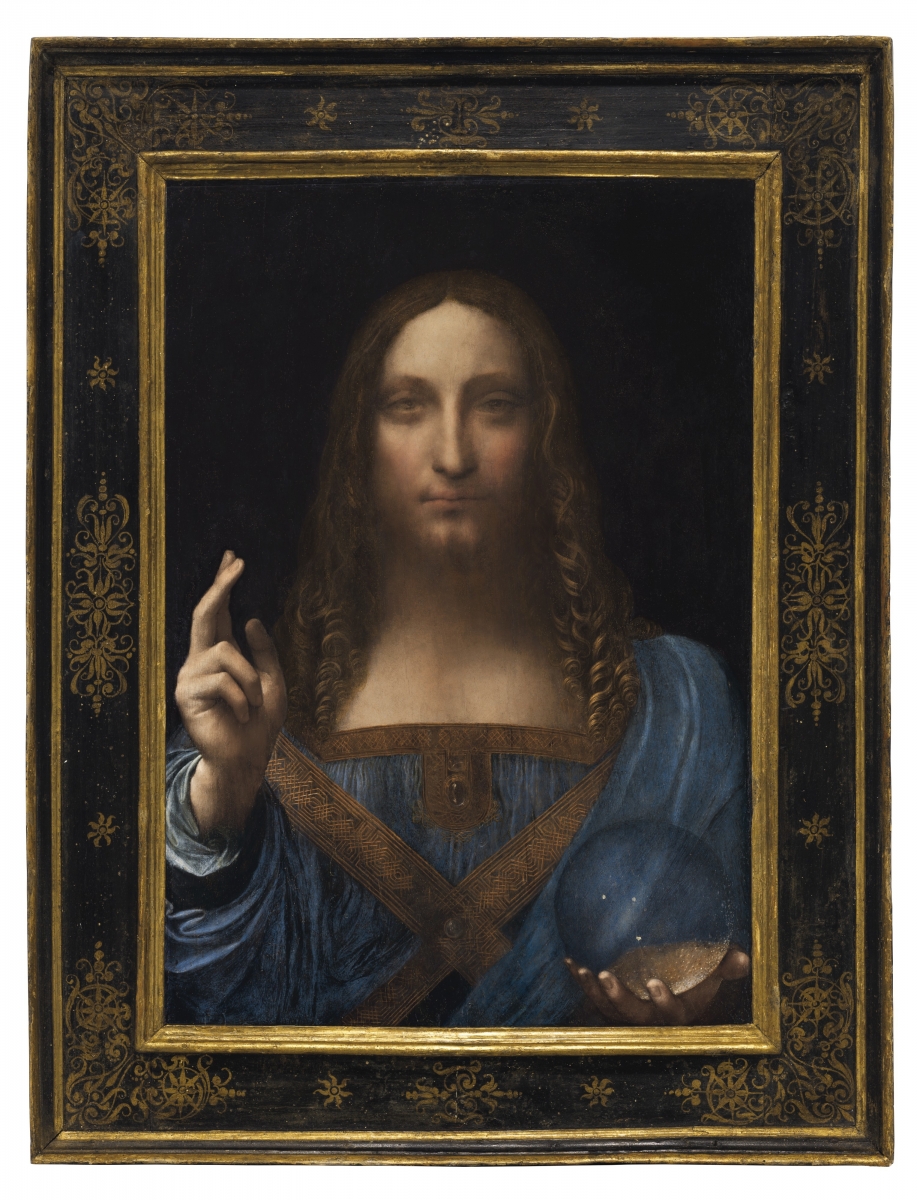 ही पेंटिंग आहे येशू ख्रिस्ताची. ख्रिस्ताला या पेंटिंग मध्ये ‘जगाचा तारणहार’ म्हणून दर्शवलं गेलंय. याला ‘सेवियर ऑफ दि वर्ल्ड’ किंवा ‘सॅल्वातोर मुंडी’ म्हणतात. २ फुट १७ इंच उंचीच्या या चित्रात ख्रिस्ताने ‘रेनेसां’ पद्धतीचे कपडे परिधान केलेले दिसत आहे. त्याचा एक हात आशिर्वादासाठी उठला आहे तर दुसऱ्या हातात ‘जादुई काचेचा गोळा’ आहे.