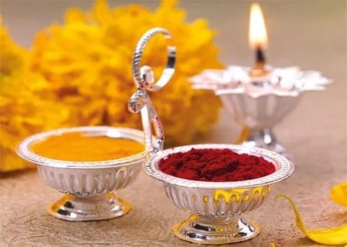 सध्या छान डेकोरेटेड अशा पूजेच्या थाळ्या मिळतात. रोज वापरायला आणि औक्षण करायला अशा दोन्ही वेळेस उपयोगी पडणारा प्रकार आहे हा..