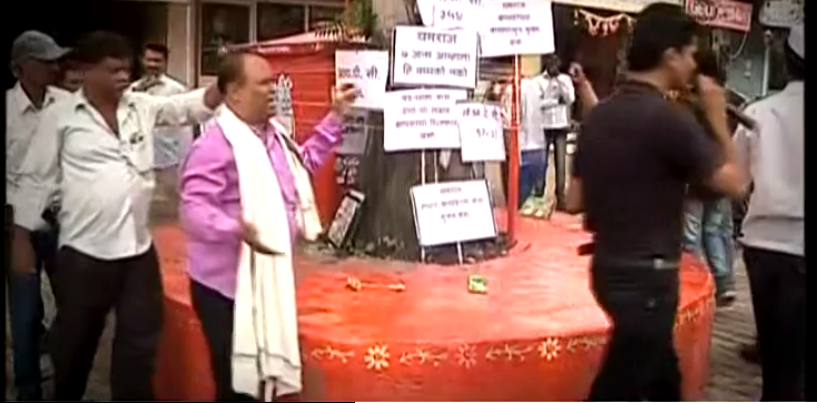 मंडळी, पिंपळाला फेऱ्या मारणारे हे पुरुष पत्नीपिडीत संघटनेचे कार्यकर्ते आहेत. वटपौर्णिमेच्या एक दिवस अगोदरच त्यांनी यमराजला साद घातली. यावेळी यमराजाला उद्द्येशून फलक देखील लावले होते. फलकावर लिहिलं होतं ‘यमराज, बायकोच्या त्रासापासून मुक्त करा’, ‘यमराज सात जन्म आम्हाला ही बायको नको’, ‘यमराज लबाड बायकांना सेवा मुक्त करा’, ‘नवऱ्याला त्रास देणाऱ्या बायकांचा धिक्कार असो’ इत्यादी. शिवाय या पुरुषांनी फेऱ्या मारता मारता खास पत्नीमुक्तीचं गाणं सुद्धा गायलं.