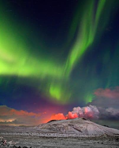 फोटोग्राफर ख्रिस मॅथ्यूजने जिवंत ज्वालामुखीचे फोटो घेतले आहेत. इतके जवळून घेतलेले हे फोटो खरोखर डोळ्यांचे पारणे फेडणारे आहेत. आणि या फोटोंचे अजून एक वैशिष्ट्य म्हणजे हे northen lights मध्ये घेण्यात आले आहेत. Northen lights म्हणजे ध्रुवीय देशांत रात्री दिसणारे नैसर्गिक लाइट्स. हा एक रंगांचा सोहळाच असतो, जो या कालावधीत रात्री अनुभवता येतो. हिरव्या, केशरी, पिवळ्या अशा अनेक रंगांनी आकाश भरून जाते. हे लाईट्स वर्षभर दिसत नाहीत, तर ते ठराविक काळातच दिसतात. यासाठी अनेक पर्यटक या कालावधीत ध्रुवीय देशांना भेट देत असतात. मॅथ्यूजने या लाइट्समध्ये घेतलेले फोटो म्हणजे कोणत्याही फोटोग्राफरसाठी once in lifetime असा अनुभव होता. या फोटोंमध्ये ज्वालामुखीचे अंतरंग इतके अचूक टिपले गेले आहेत की पाहून आश्चर्य वाटते. आणि विशेष म्हणजे ज्वालामुखीच्या उद्रेक होताना हे फोटो घेतलेले आहेत. तसेच हे फोटो कोणत्याही ड्रोनने न टिपता कॅमेऱ्याने टिपले आहेत. मॅथ्यूजने त्यासाठी खूप मेहनत घेतली आहे.