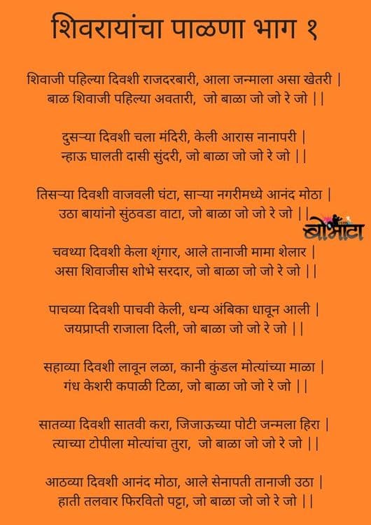 मंडळी, आपल्याकडे मौखिक साहित्याची परंपरा मोठी आहे. म्हणजे जेव्हा लोकांना लिहितावाचता येत नव्हतं, तेव्हा त्यांनी पाठ करुन, आपल्या पुढच्या पिढीला शिकवून हे सारं साहित्य सतत ताजंतवानं ठेवलं. यात मग ओव्या,गौळणी, गाणी, पाळणे असं बरंच काही आलंच. जन्माचा सोहळा हा आनंदाचा सण. त्यात महापुरुषांचा जन्म म्हणजे दुधात साखर. या लोकांचा जन्मसोहळा आपण अजूनही मोठ्या उत्साहात साजरा करतो. त्यासाठी आपल्या आधीच्या पिढ्यांनी पाळणेसुद्धा लिहून ठेवलेत. देवांचे पाळणे तर आहेतच आणि शिवरायांसारख्या महापुरुषांचेही पाळणे आहेत. फक्त अडचण इतकीच आहे की ते नक्की कुणी लिहिले असतील याची माहिती काही सापडत नाही. अर्थात शिवाजी महाराजांचा पाळणा बराच अलिकडचा असावा कारण त्यात फोटो काढण्याचा संदर्भ दिला आहे.