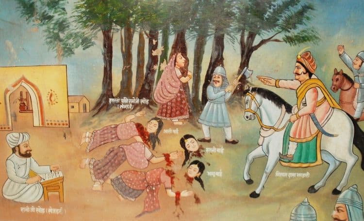 'प्राण देऊन मला एक जरी झाड वाचवता आलं तरी ते खूप मोलाचं ठरेल' अशी तिची यामागची भावना होती. त्या सैनिकांना मात्र त्याच्याशी काही देणंघेणं नव्हतं. त्यांनी तिच्यासकट झाडावर कुर्हाडीचे घाव घालायला सुरुवात केली. अशाच एका घावाने तिचं शिर धडापासून वेगळं केलं. तिच्या मुली भेदरलेल्या नजरेने आणि धक्का बसलेल्या विषण्ण मनाने हे पाहत होत्या. त्यांची आई गेली तिथं त्यांच्यासाठी सगळं संपलं. त्यांनीही मग आईच्या पावलावर पाऊल टाकत खेजरीच्या झाडांना आणि पाठोपाठ येणाऱ्या मरणाला कवटाळलं.