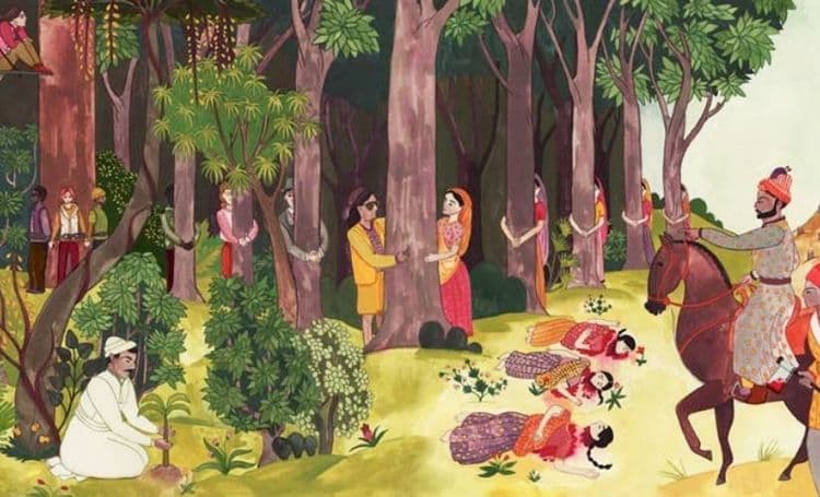 तारीख होती ११ सप्टेंबर १७३०. गावातली खेजरीची झाडं तोडण्यासाठी मोठ्यामोठ्या कुऱ्हाडी घेऊन आलेली ती अनोळखी माणसं पाहून गावातील एक महिला- अमृतादेवी- पुढे सरसावली. तिच्या लक्षात आलं की ही माणसं ही झाडं तोडण्यासाठी आलेली आहेत. झाड तोडणं किंवा झाडाच्या कुठल्याही भागाला इजा पोहोचवणं हे त्यांच्या धर्मानुसार निषिद्ध होतं. त्यामुळे सुरुवातीला अमृतादेवीने या माणसांना विरोध करून पाहिला. पण राजाचे सैनिक या विरोधाला जुमानणार नाहीत हे तिच्या लवकरच लक्षात आलं. एव्हाना बाहेरची गडबड ऐकून तिच्या तीन मुलीही अंगणात आल्या होत्या. शेवटी अमृतादेवीने एका खेजरीच्या झाडाला मिठी मारली.
