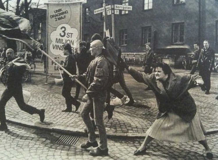 या बाईंच नाव आहे ‘डॅनॉट डॅनियलसन’. १९८५ साली स्वीडनच्या रस्त्यांवर नॉर्डिक राईश पक्षाचं शक्तीप्रदर्शन सुरु होतं. हा पक्ष हिटलरच्या नात्झी विचारसरणीला मानणारा होता. लोकांमध्ये या पक्षाविषयी राग तर होता पण कोणी त्यांच्या वाट्याला जात नव्हतं. डॅनॉट बाई हिम्मत करून या शक्तीप्रदर्शनाच्या ठिकाणी गेल्या. फक्त तिथे गेल्याच नाही तर त्यांनी पक्षाच्या एका कार्यकर्त्याला आपल्या हातातल्या बॅगने मारलं देखील.