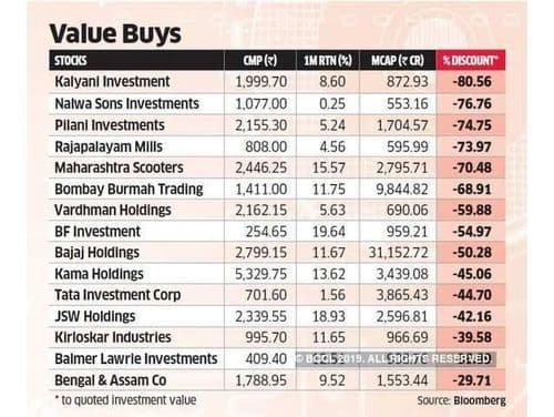 जेव्हा बाजार मंदीत असतो तेव्हा या कंपन्यांचे शेअर्स ६० ते ७० टक्के डिस्काउंट मध्ये उपलब्ध असतात. उदाहरणार्थ बाजार पडला तर ब्रिटानियाचे शेअर्स ज्या प्रमाणात पडतील त्यापेक्षा होल्डिंग कंपन्यांचे शेअर्स जास्त पडतात. अशावेळी जर होल्डिंग कंपन्यांचे शेअर्स घेतले तर पुढच्या तेजीत जास्त फायदा होतो.