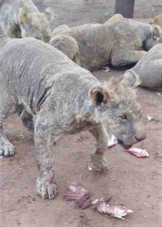 दि डोडोच्या तपासानुसार Pienika Farm मधील तब्बल १०० सिंह मेंज नावाच्या त्वचारोगाला बळी पडले आहेत. मेंज त्वचारोगात प्राण्याच्या शरीरावरचा केसाळ भाग झडतो आणि त्याजागी आतली त्वचा दिसू लागते. आपल्याकडच्या बऱ्याच भटक्या कुत्र्यांना हा आजार झाल्याचं आढळून येईल.