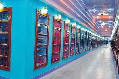 तिथले स्थानिक लोक सांगतात की महाराज सुरुवातीचे काही वर्षे लायब्ररीतच राहत होते आणि त्यांनी तिथली जवळपास सगळी पुस्तके वाचली आहेत. असं म्हणतात की जगभरातल्या सगळ्या विषयांवरची पुस्तके या लायब्ररीत उपलब्ध आहेत. या लायब्ररीत जवळपास ५५० संदर्भग्रंथांची कपाटे आहेत. जगभरातील सगळे धर्मग्रंथ, देशातील जवळपास सगळ्या न्यायालयांनी दिलेले निकाल, जगभरातील छोट्यामोठया लेखकांची पुस्तके, महापुरुषांची चरित्रे, तसेच कित्येक दुर्मिळ पुस्तकांचा संग्रह या लायब्ररीत पाहायला मिळतो. शिक्षण क्षेत्रात या लायब्ररीचे मोठे योगदान आहे. संशोधकांना इतरत्र भटकण्याची गरज निर्माण होऊ नये म्हणून सगळ्या विषयांतील मूलभूत पुस्तके इथे उपलब्ध आहेत. अत्यंत व्यवस्थितपणे विषयवार पुस्तकांची रचना येथे केलेली पाहायला मिळते.