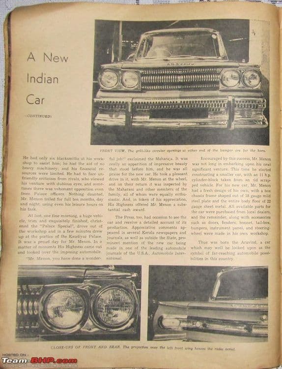 आजही भारतात हा वाद सुरू असतो की भारतात पहिली कार हिंदुस्थान मोटर कंपनीने बनवली नाही, तर तो मान अरविंद कार कंपनीकडे जातो. पहिली कार कोणी बनवली हा वाद बाजूला ठेवला तरी अरविंद कार कंपनीचा इतिहास मात्र रंजक आहे. गोवा राज्य भारतात सामील झाले तेव्हा अनेक लक्झरी कार्स भारतात विक्रीसाठी उपलब्ध झाल्या. तेव्हा त्रावणकोरच्या महाराजांनासुद्धा त्यांच्या इतमामाला शोभेल अशी गाडी हवी होती. या कामाची जबाबदारी त्यांनी त्यांचे सचिव वी. पी तापी आणि बाळकृष्ण मेनन यांच्यावर सोपवली.