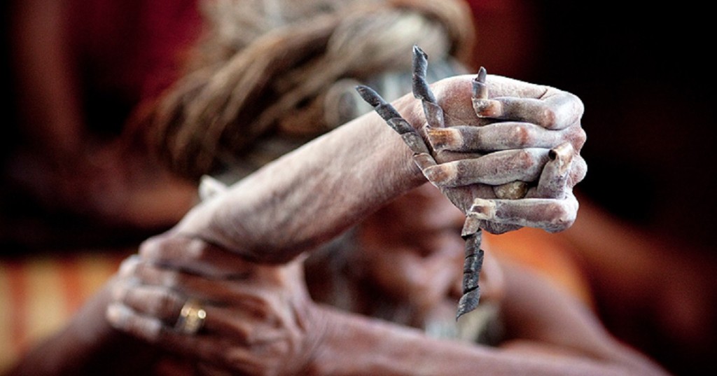 हे आहेत साधू अमर भारती. त्यांनी आजकाल नाही, तर १९७३मध्ये त्यांचा हात उंचावलाय, तो अजून खाली केलाच नाहीय. आता या घटनेला जवळजवळ ४४ वर्षं लोटलीत. इतक्या वर्षांत तो हात न हलवल्यानं त्या हाताच्या मज्जासंस्थेनं काम करणं बंद केलंय, तिथली हाडं, स्नायू आणि कातडीचीही हानी झालीय, आणि त्यांची नखं गोलगोल वळत विचित्रपणे वाढली आहेत.