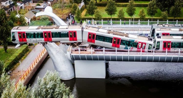 देव तारी त्याला कोण मारी? अशी आपल्याकडे म्हण आहे. ही म्हण सार्थ करून दाखवणारा योगायोग नुकताच म्हणजे सोमवार दिनांक २ नोव्हेंबर रोजी नेदरलँड्स मध्ये घडला आहे. अगदी एखाद्या हॉलिवूडच्या सिनेमातला वाटावा असा. तिथली डच मेट्रो ट्रेन स्पिजकेनीस येथील डी अकर्स या शेवटच्या स्टेशनपाशी आल्यावर थेट एलिव्हेटेड ट्रॅकच्या शेवटपर्यंत गेली आणि सुमारे ३० फुटांवरून खाली कोसळणार इतक्यात तिथे असलेल्या एका शिल्पाकृतीच्या आधाराने अलगद विसावली.