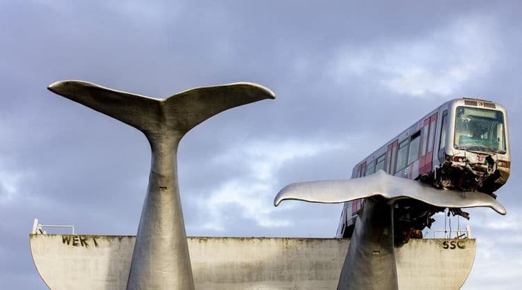 पाण्यात सूर मारताना देवमासा जसा दिसेल तशा आकारातलं हे देवमाशाच्या शेपटीचं शिल्प म्हणजेच 'व्हेल्स टेल' २००२ मध्ये रॉटरडॅम शहराच्या बाहेर असलेल्या स्पिजकेनीसमधील डी अकर्स येथे उभारलं गेलं. रेल्वे ट्रॅकच्या टोकाशी असलेल्या या कलाकृतीला नावही अगदी अचूक देण्यात आलं आहे - सेव्ह्ड बाय व्हेल्स टेल! सोमवारी त्याने आपलं नाव सार्थ करून दाखवलं.