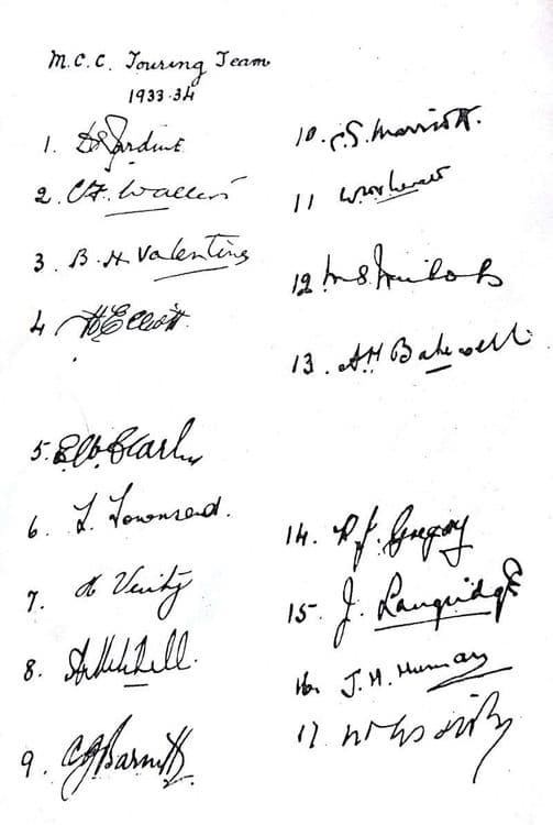सुप्रसिध्द क्रिकेटपटू विजय मर्चंट यांची बहीण लक्ष्मी हिला स्वाक्षर्या घेण्याचा छंद होता. त्यांनी एमसीसीच्या संघातल्या सोळा खेळाडूंच्या स्वाक्षर्या एका पानावर घेतल्या होत्या. विजय मर्चंट यांची बहीण असल्याने त्यांच्यासाठी हे काम सोपं होतं. शिवाय विजय मर्चंट पण लक्ष्मीला या स्वाक्षर्या गोळा करण्यात मदत करीत असत. म्हणजे ते स्वतः कुणाच्या विशेष भेटीगाठीसाठी जात तेव्हा ते लक्ष्मीसाठी स्वाक्षरी घेत असत.